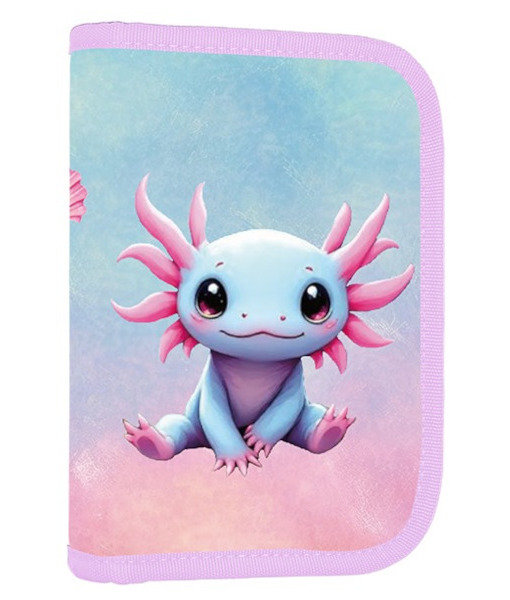 Penál: Jednopatrový školní penál se dvěma chlopněmi bez náplně. Gumová poutka k uchycení psacích potřeb. Na vnitřní chlopni je průhledná fólie na rozvrh hodin.