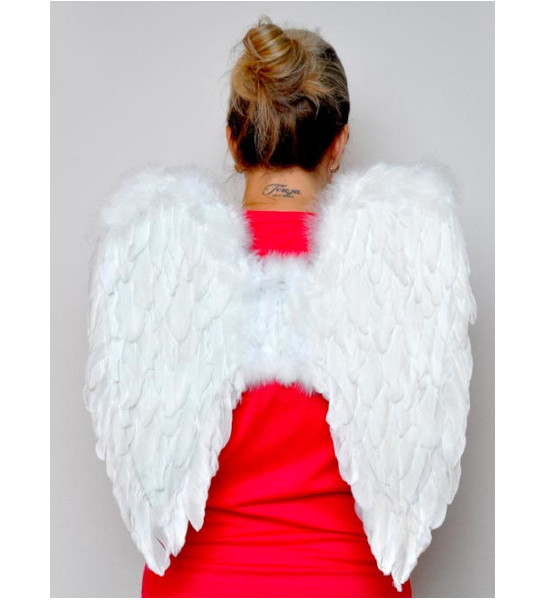 Bílá andělská křídla z peří se budou hodit jako správný doplněk pro andílka.