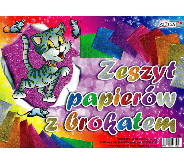Blok obsahuje 8 listů barevného papíru 150g s brokátem.