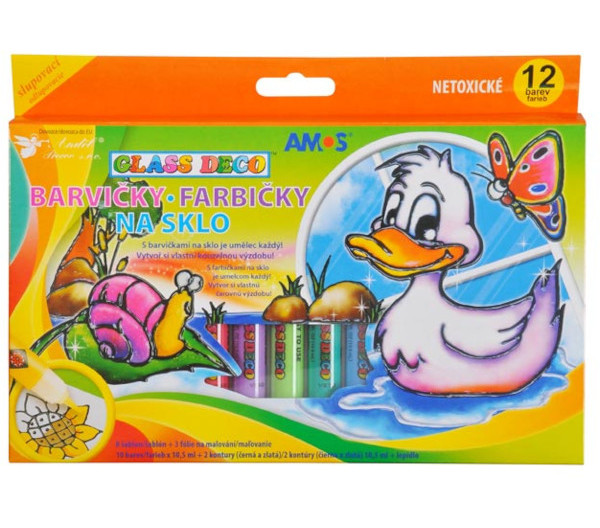 Barvičky na sklo 12 barev 10,5 ml + šablony a fólie. NAZDOBTE SI SKLO DLE VLASTNÍ FANTAZIE! S barvičkami na sklo je umělec každý! Vytvoř si vlastní kouzelnou výzdobu!
