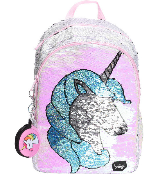 Školní batoh Fun Unicorn, díky reverzním flitrům můžete jeho vzhled proměňovat dle nálady, vhodný od 3. třídy 1. stupně ZŠ a také pro 2. stupeň ZŠ.