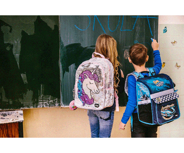 Školní batoh, díky reverzním flitrům můžete jeho vzhled proměňovat dle nálady.
