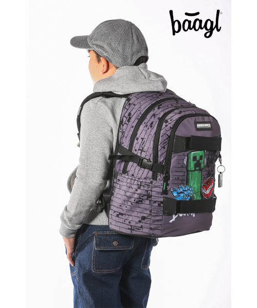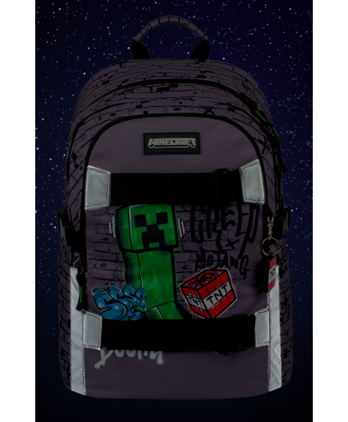 Ergonomický školní batoh Skate v oficiálním designu počítačové hry Minecraft s popruhy na uchycení skateboardu je ideální pro všechny fanoušky této legendární hry.