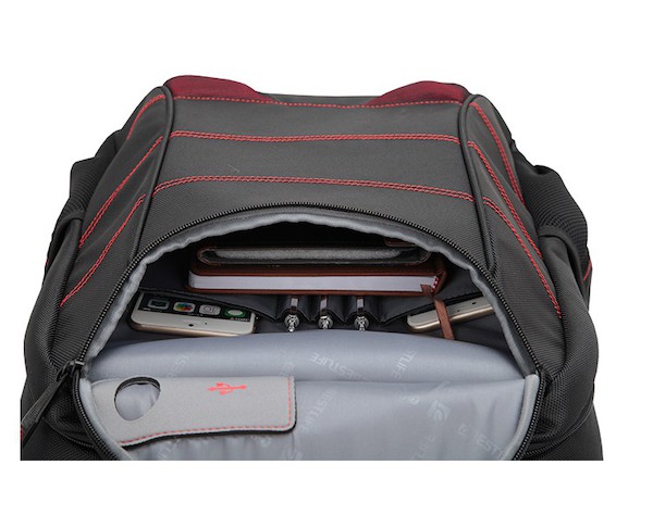 Funkční přihrádky pro myš, klávesnici, kabel, 3 velké přihrádky pro notebook, herní konzole a kapsa na tablet.