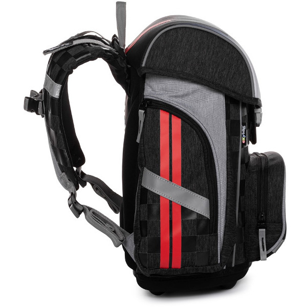 Školní aktovka z řady Premium je anatomicky tvarovaná a zajišťuje tak správné usazení na zádech. Vyztužená záda a vnitřní výztuha udržují stálý tvar batohu. Polstrování je z příjemného prodyšného materiálu, široké měkčené popruhy jsou navrženy tak, aby dokonale přilnuly a rovnoměrně zatížily ramena dítěte. Aktovka se skládá z jedné prostorné komory, kam se pohodlně vejdou všechny školní pomůcky pro děti v 1. a ve 2. třídě. Dno batohu je z pevného materiálu, chrání tím obsah před převržením a vysypáním. Zapínání je na bezpečnostní přezku. Přední kapsička je učena na svačinu, nechybí řada reflexních prvků, díky kterým je aktovka viditelnější.