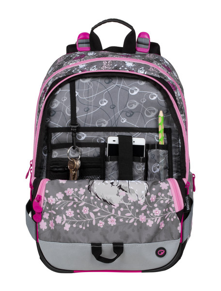 1.-3.třída ZŠ. Tříkomorový školní batoh pro holčičky do první třídy.