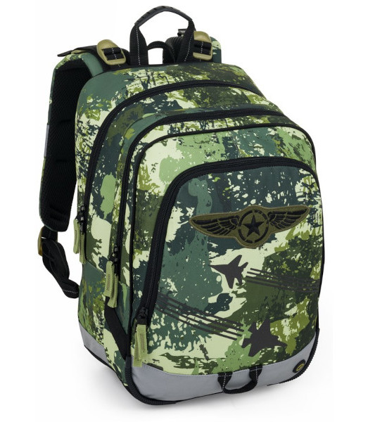 Lehký tříkomorový školní batoh s vojenským motivem pro malé hrdiny. Oblíbí si jej děti i rodiče. Vhodný od první do třetí třídy. Kvalitní systém pro zdravá záda, organizér a praktické kapsy, do kterých si školák přehledně uspořádá učebnice i pomůcky. Set obsahuje plnou výbavu: sladěný penál, sáček, krabičku na svačinu a láhev.
