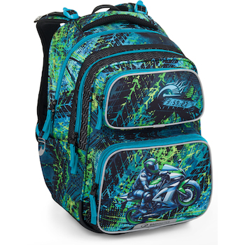 Batoh pro malé závodníky! Tento stylový batoh s motorkářem je navržen pro drobnější školáky od první do třetí třídy.