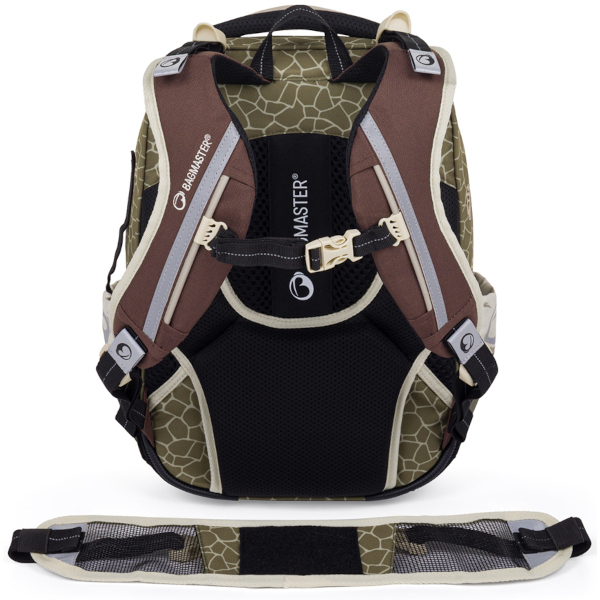 Ramenní popruhy i zádový systém jsou měkce polstrované. Popruhy se nastavují pomocí horních a dolních plastových spon. Je třeba upravovat délku podle toho, jak školačka roste. Konce popruhů jsou magnetické. Aby neblincaly, jednoduše je magnetem připnete nad plastovou sponu.
