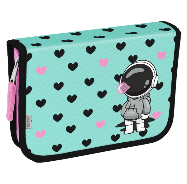 2. Školní penál jednopatrový, prázdný s dvěma chlopněmi, o rozměru š. 19,5 x v. 4,5 x h. 13,5 cm