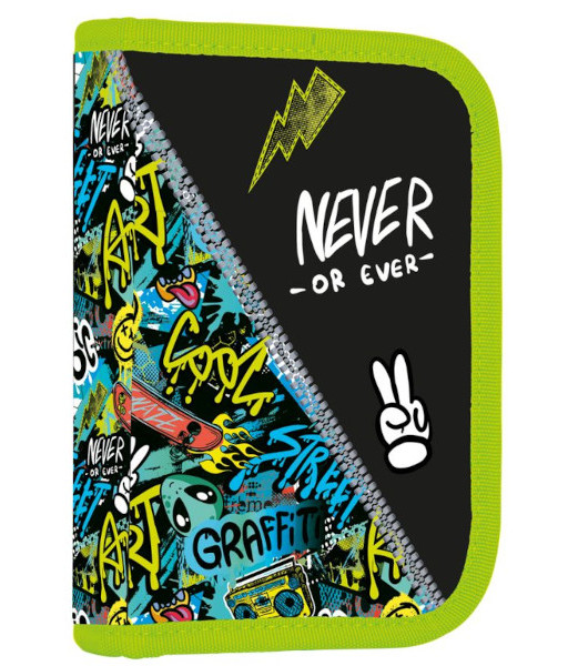 Penál: Jednopatrový se dvěma chlopněmi, poutka na psací potřeby a průhledná fólie na rozvrh hodin.- Výrobce:Oxybag