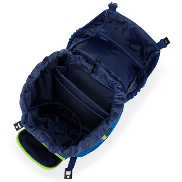 Nechybí vnitřní rozřazovač, stahování na šňůrku, boční kapsa na láhev ani přední kapsička na svačinu.
