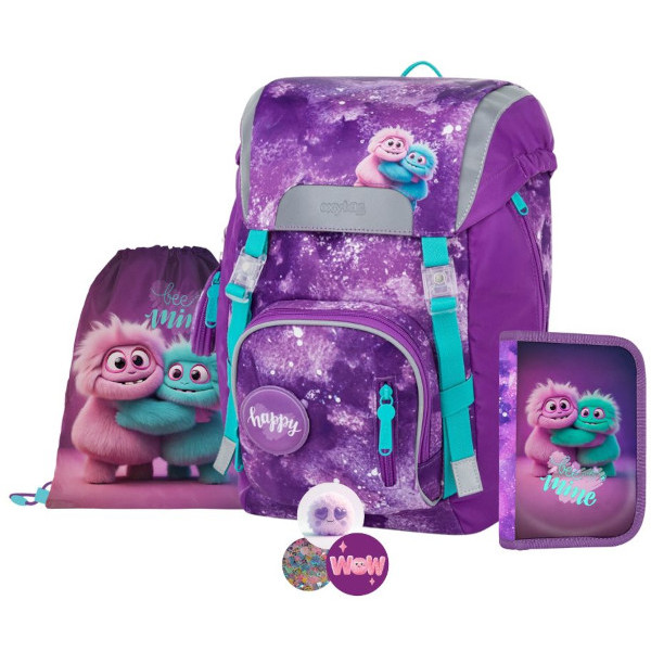 Výhodný 4dílný set batohu OXY SKY, penálu, sáčku na cvičky a sady 3 odznáčků.
