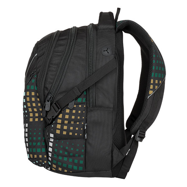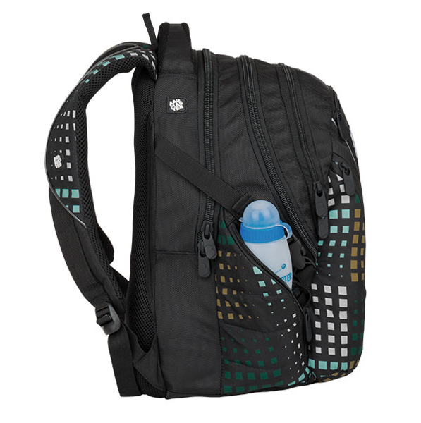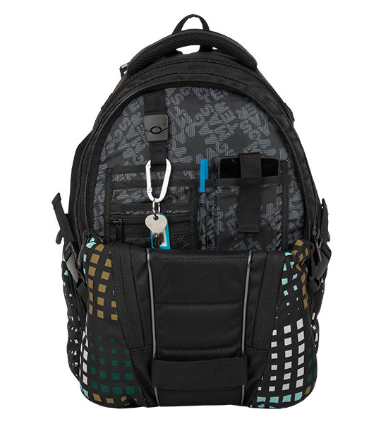 Studentský batoh pro kluky a holky. Tříkomorový, prostorný. Polstrovaná záda a ramenní popruhy. Dvě boční kapsy na láhev. Organizér, odnímatelný klip na klíče. Reflexní prvky. Polstrovaná kapsa na notebook 15".