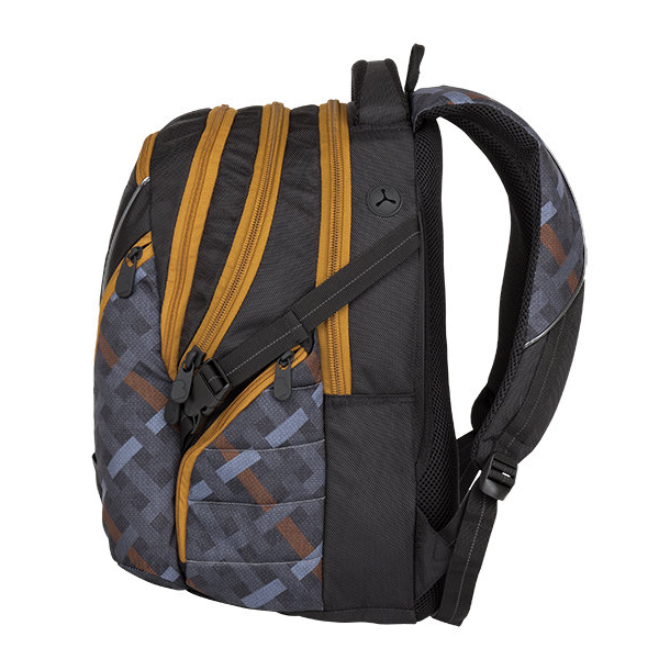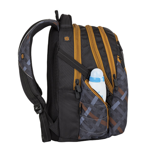 Studentský batoh pro kluky a holky. Tříkomorový, prostorný. Polstrovaná záda a ramenní popruhy. Dvě boční kapsy na láhev. Organizér, odnímatelný klip na klíče. Reflexní prvky. Polstrovaná kapsa na notebook 15".