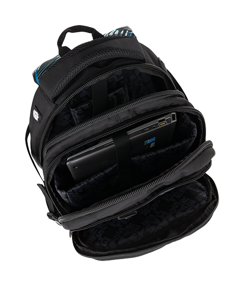 Tříkomorový, prostorný studentský batoh se spoustou kapes vhodný od 4. třídy ZŠ.