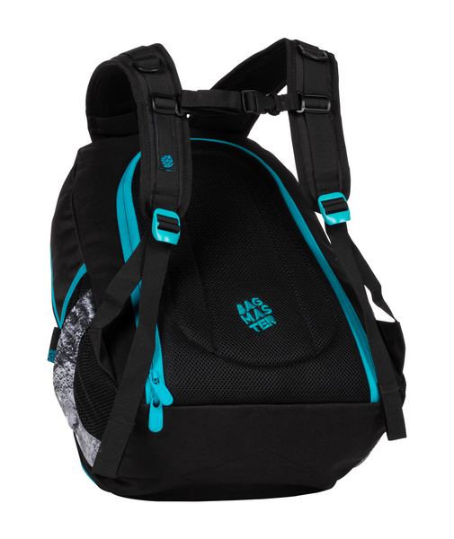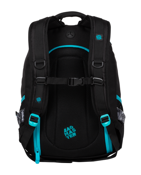 Polstrovaná záda v bederní oblasti, nastavitelné popruhy, hrudní popruh.