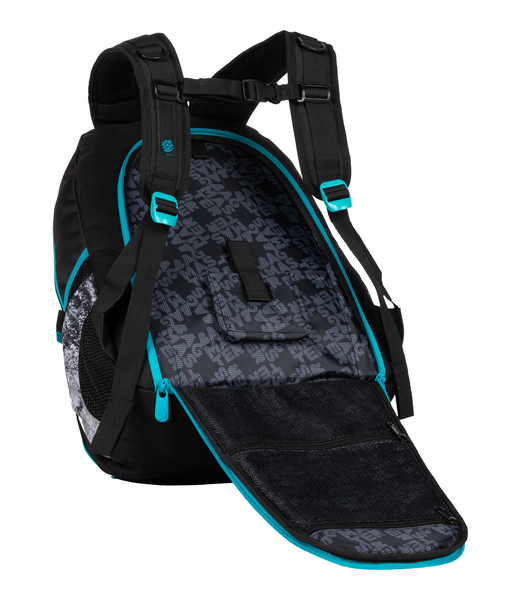Polstrovaná záda, se skrytou kapsou na zip, uvnitř se spoustou kapsiček.