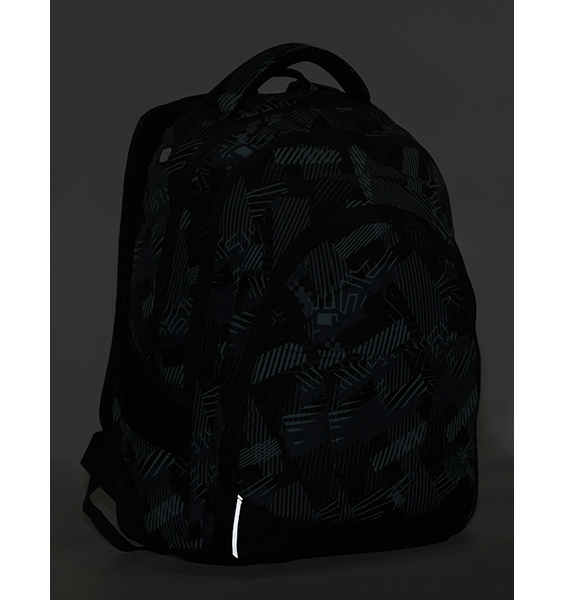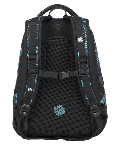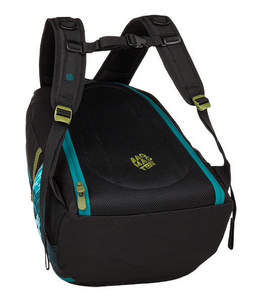 Polstrovaná záda v bederní oblasti, nastavitelné popruhy, hrudní popruh.