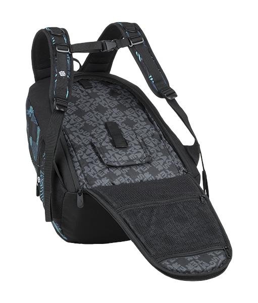 Polstrovaná záda, se skrytou kapsou na zip, uvnitř se spoustou kapsiček.