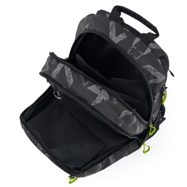 Batoh se skládá ze dvou hlavních komor a jedné menší přední kapsičky opatřenými pevnými zipy a praktickými poutky.