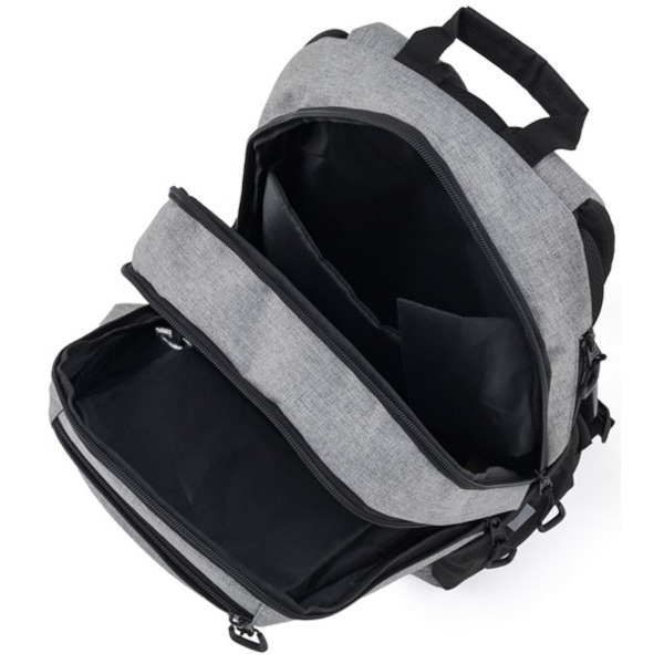Batoh se skládá ze dvou hlavních komor a jedné menší přední kapsičky opatřenými pevnými zipy a praktickými poutky.