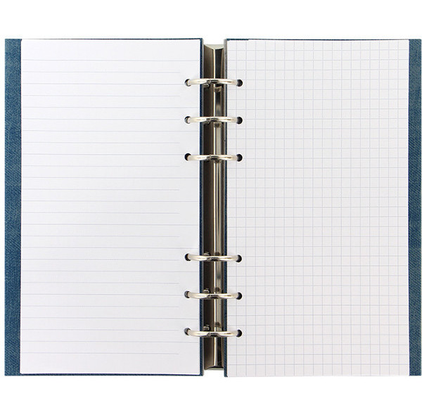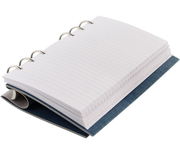 Zápisník s odolnými deskami ve vzhledu kůže. Otvíratelná kroužková vazba kompatibilní s náplněmi do organizéru Filofax, navíc díky Filofax děrovači můžete vkládat vlastní obsah.