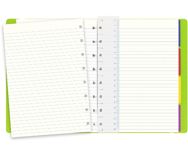 Unikátní kostrukce umožňuje vyjímat, vkládat a přemísťovat jednotlivé listy.Velikost A5