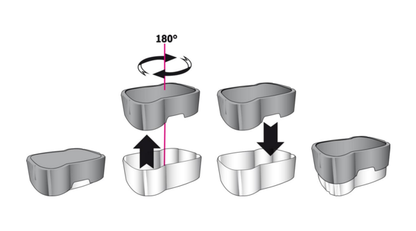 Jednoduše odejměte víčko, otočte o 180° okolo vlastní osy a opět nasaďte, až víko zapadne a zacvakne. Nyní se do boxu vejdou dokonce celá jablka. Snadno a rychle.