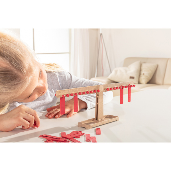 Děti při práci se závěsnými destičkami navíc rozvíjejí i jemnou motoriku a schopnost soustředění – každý pohyb má okamžitý vliv na rovnováhu váhy.