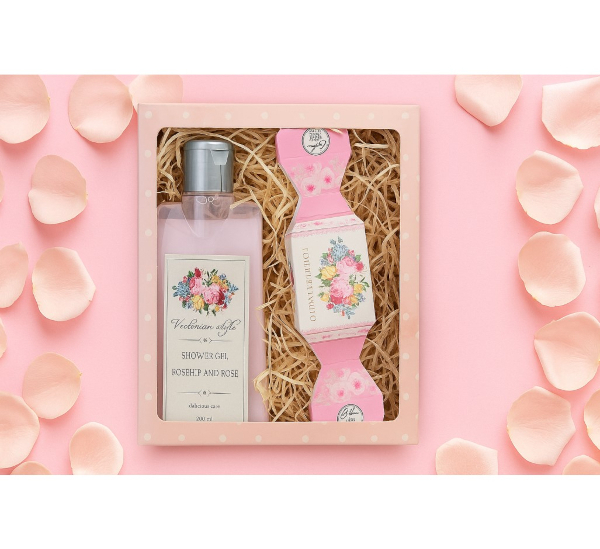 Uchvátí vás vůně růže, která se vine z každého produktu této elegantní sady, přinášející vám nejen osvěžení, ale také dotek královské něhy. Kosmetická sada pro ženu Victorian Style není jen o produktech, ale o celkovém zážitku. Každý detail je navržen tak, aby vám přinesl radost a pocit luxusu. Osvěžte svou koupelnu tímto balíčkem a dopřejte si chvíle rozkoše a uvolnění. Dárkový kosmetický balíček pro ženu Victorian Style obsahuje sprchový gel 200 ml a ručně vyráběné tuhé mýdlo 30 g s vůní růže.Sprchový gel s extrakty z šípků a květů růže 200 ml – jemný přípravek osobní hygieny vhodný k mytí celého těla, s podmanivou moderní vůní. Je obohacen o kosmetický olivový olej a kvalitní extrakty z plodů šípku (Rosa Canina) a květů růže (Rosa Centifolia), které obsahují flavonoidy, ovocné kyseliny a další prospěšné látky. V kombinaci s kvalitními mycími složkami receptury vznikl přípravek s jemným působením na pokožku. Bohatá pěna je vhodná ke každodennímu použití, šetrně myje a zanechává vaši pokožku svěží a krásně provoněnou.Ingredients: Aqua, Sodium Laureth Sulfate, Cocamidopropyl Betaine, Sodium Chloride, Cocamide DEA, Lauryl Glucoside, Olive Oil Glycereth-8 Esters, Styrene/Acrylates Copolymer, PEG-7 Glyceryl Cocoate, Polyquaternium-7, Propylene Glycol, Rosa Canina Fruit Extract, Glycerin, Rosa Centifolia Flower Extract, Potassium Sorbate, Sodium Benzoate, Lactic Acid, Parfum, Citric Acid, Methylchloroisothiazolinone, Methylisothiazolinone, Citronellol, Geraniol, Hydroxycitronellal, Linalool, CI 42090, CI 19140, CI 17200.Krémové toaletní mýdlo s vůní růže 30 g – Myje šetrně a účinně pokožku celého těla bez jejího nadměrného vysušování.Ingredients: Aqua, Glycerin, Sodium Stearate, Propylene Glycol, Sorbitol, Sodium Laurate, Sodium Laureth Sulfate, Sodium Lauryl Sulfate, Sodium Chloride, Stearic Acid, Lauric Acid, Pentasodium Pentetate, Tetrasodium Etidronate, Styrene/Acrylates Copolymer, Chamomilla Recutita Extract, Calendula Officinalis Extract, Salvia Officinalis Extract, Urtica Dioica Extract, Betula Alba Leaf Extract, Parfum, Citronellol, Eugenol, Geraniol, Hydroxycitronellal, Linalool, CI 19140, CI 17200, CI 42090, CI 14720, CI 28440, CI 15985.Kosmetická sada pro ženu Victorian Style Vás přenese do kvetoucí zahrady plné růží každým sprchováním a mytím. Tento svěží sprchový gel se stará o vaši pokožku a zanechává vás voňavou jako když procházíte růžovým sadem. Každé mýdlo je ručně vytvořeno s láskou a pečlivostí. S vůní růže přináší tento malý klenot do vaší koupelny krásu a noblesu.