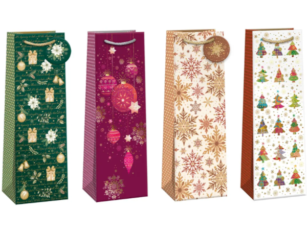 Dárková taška papírová na láhev 13 x 37,5 x 11 cm mix motivů