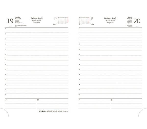 Diář obsahuje: osobní údaje, plánovač dovolené (měsíční přehled), plánovací kalendář, telefonní předvolby, státní svátky České a Slovenské republiky, mezinárodní svátky, roční výhled, denní layout, adresář, mapa Evropy a České a Slovenské republiky- Výrobce:Ostatní