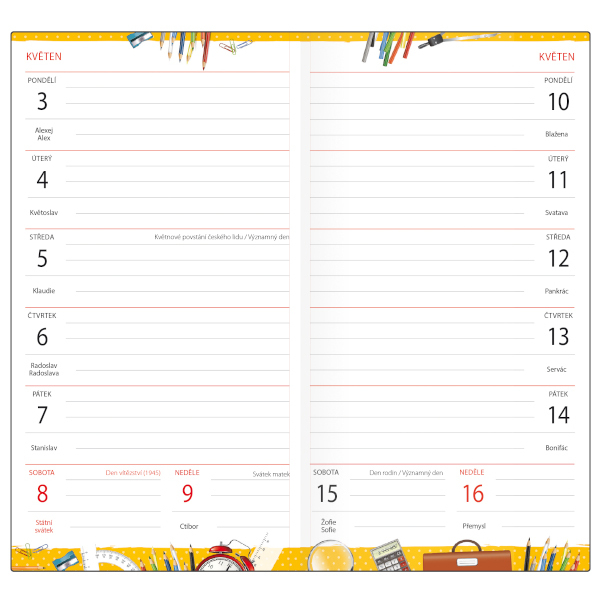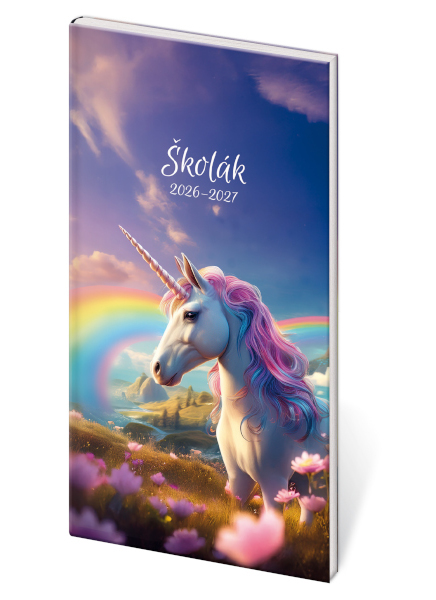 • Školní deníček - diář s rozvrhem hodin a možností zapisování úkolů a poznámek na školní rok 2026/2027 s českým kalendáriem.