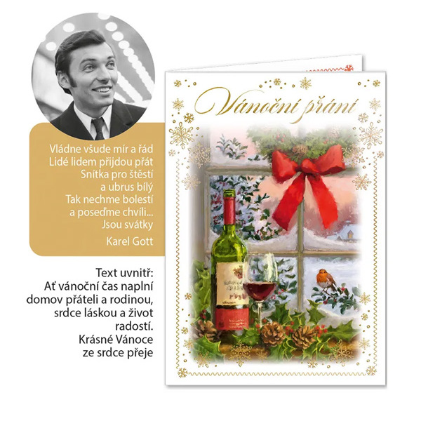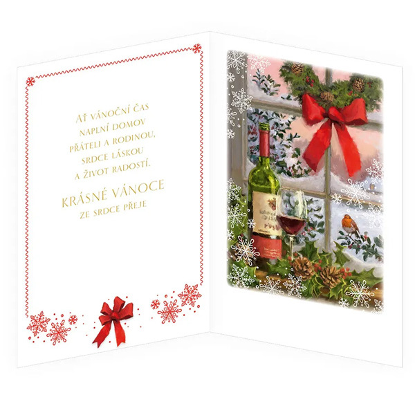 Vánoční pozdrav s textem uvnitř přání.