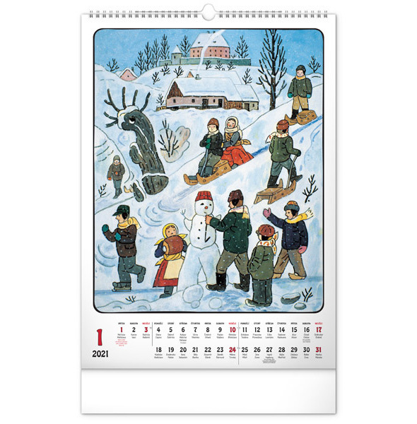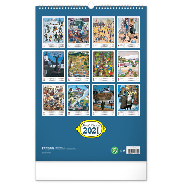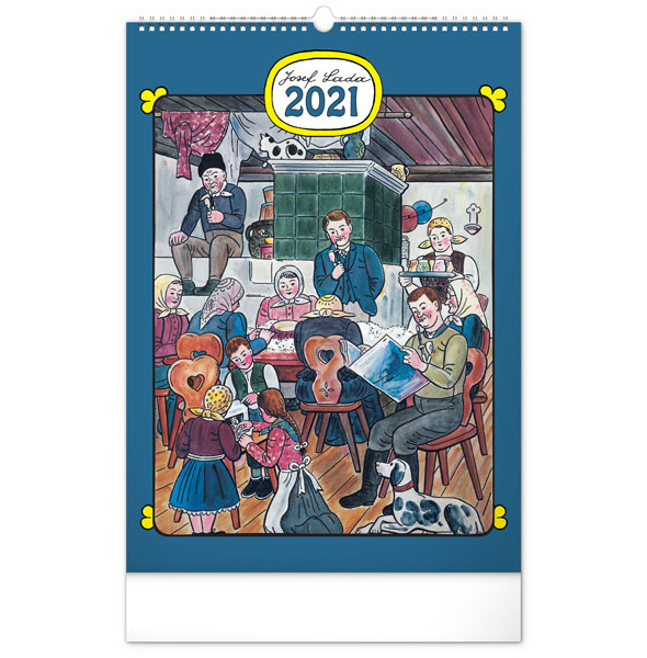 Jak se dříve žilo na českém venkově, vypovídají známé obrazy Josefa Lady na stranách oblíbeného formátu nástěnného kalendáře • Obrazy doplňuje české kalendárium se jmény a zvýrazněnými nedělemi a svátky na bílém pozadí • rozměr: 33 × 46 cm • PGN-7854-L