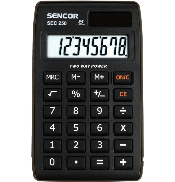 Kapesní kalkulátor s velkým 8místným displejem.