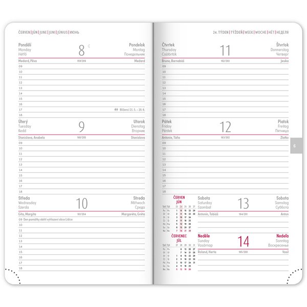 Kalendárium: 6jazyčné (CZ, SK, GB, DE, HU, RU)