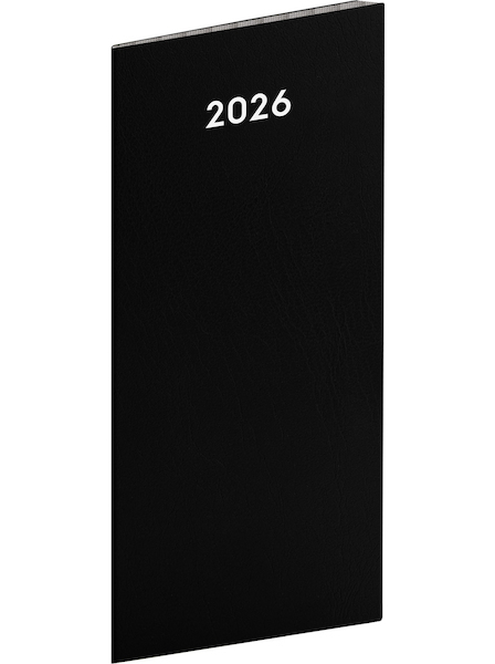 Praktický tenký diář v černé barvě s měsíčním rozložením se vejde opravdu všude.