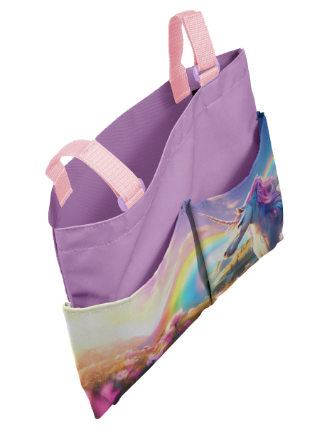 Pomocí suchého zipu se připevní ke školní lavici, k uložení slouží jedna velká a dvě menší kapsy.