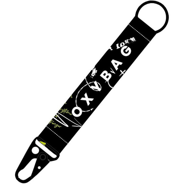 Na jednom konci je karabina pro rychlé připnutí k batohu či tašce, na druhém kovové očko na klíče nebo čip.