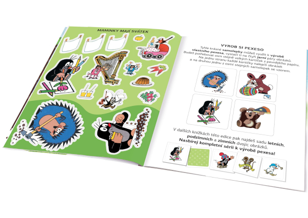 Užijte si spoustu zábavy s krtečkem! Co všechno lze s touhle knížkou plnou krásných samolepek dělat? Dozvědět se spoustu zajímavostí o jaru, plnit úkoly, dotvářet obrázky podle vlastní fantazie, vyrobit si pexeso, vyzdobit si samolepkami vlastní výkres nebo pokojíček.