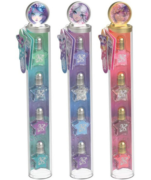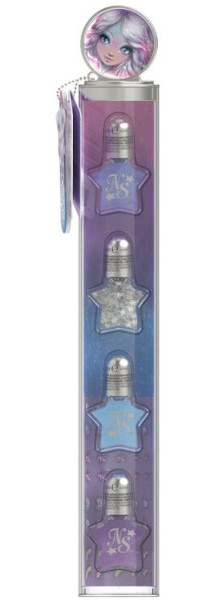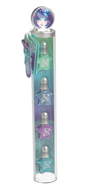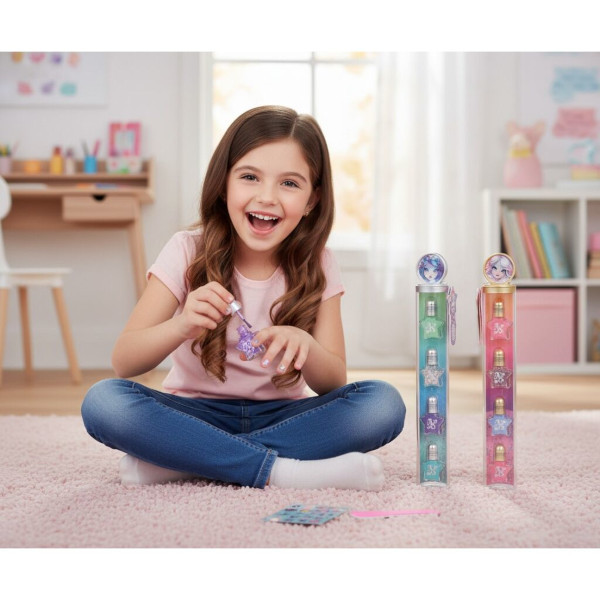 Sada nabízí vše, co potřebujete k vytvoření originální manikúry – čtyři barevné laky, nálepky i pilník.