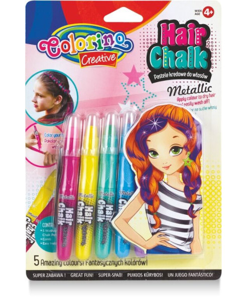 Křídy na vlasy 5 ks metalických barev.
