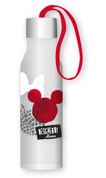 Praktická plastová láhev s praktickým poutkem, s motivem módní ikony Minnie z edice Disney.