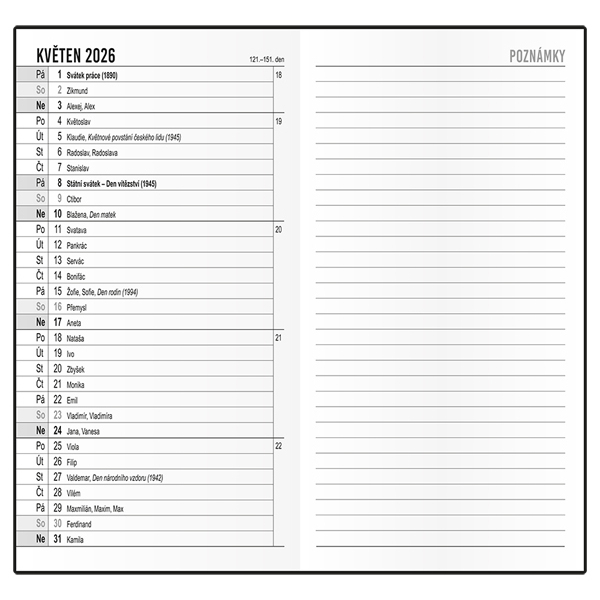 měsíční diář v jednoduché měkké vazbě v1 v oblíbeném formátu a moderním kraftovém obalu • kalendárium: roční období, letní a zimní čas, velký prostor na poznámky • informační stránky: osobní záznamy, důležitá telefonní čísla, tabulkový kalendář aktuálního roku, roční plánovací kalendář aktuálního roku, jmenný seznam, místo na zapsání odjezdů a příjezdů autobusů a vlaků, místo na poznámky • rozměr: 110x210 mm • BMH2-1-26