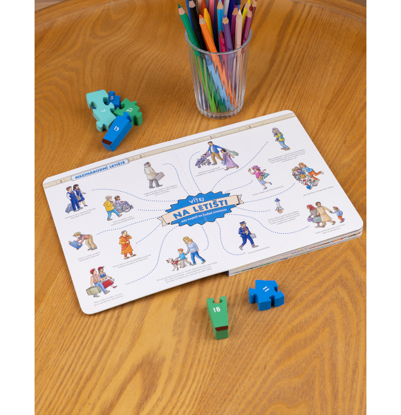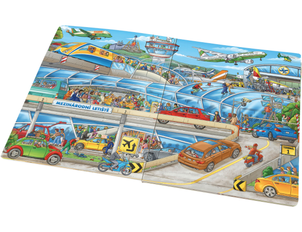 Na letišti se pořád něco děje! Kam se člověk podívá, všude se to hemží lidmi, kteří tu pracují, ale hlavně těmi, kteří někam cestují. Na stránkách téhle bohatě ilustrované knížky můžete sledovat příběhy některých z nich a doprovázet je na jejich cestách. Dozvíte se přitom, jak to chodí na letišti, prozkoumáte nejrůznější letadla a jedním z nich vzlétnete až do oblak. Nahlédnete do pilotní kabiny, do zavazadlového prostoru, ale i do jiných zákoutí, která obvykle zůstávají našim zraků skrytá. A svou dobrodružnou cestu zakončíte – jak jinak – na dovolené u moře!