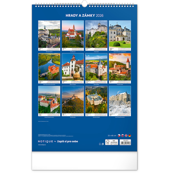 Nástěnný kalendář Hrady a zámky 33×46cm