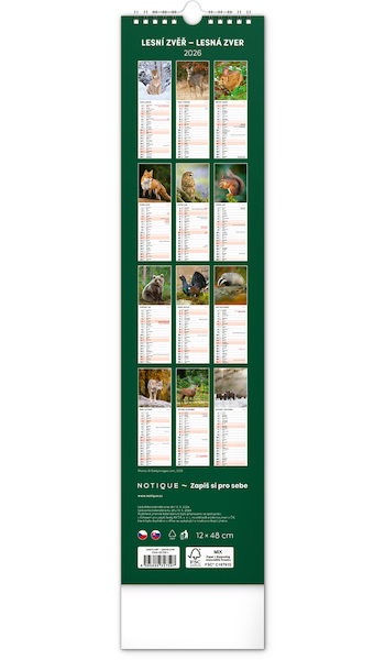 Nástěnný kalendář Lesní zvěř – Lesná zver 12×48cm