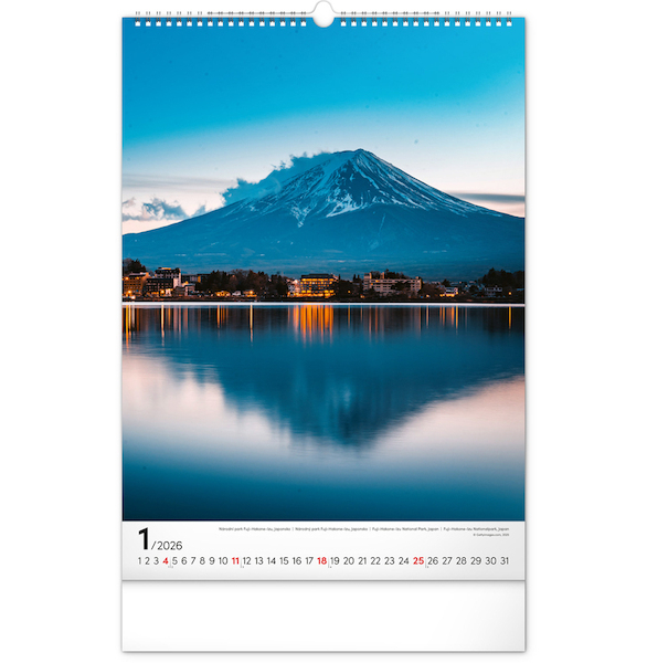 Kalendář s dechberoucími fotografiemi přírody v oblíbeném výškovém formátu kalendáře.